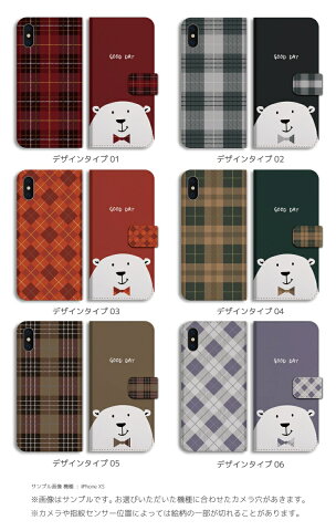スマホケース 全機種対応 手帳型 iPhone12 mini Pro iPhone11 iPhone8 iPhone SE 第2世代 ケース AQUOS sense5G sense4 sense3 lite plus basic Xperia Ace 5 10 II III Galaxy S21 A52 OPPO Reno5 A おしゃれ くま イラスト クマ 蝶ネクタイ 白くま チェック